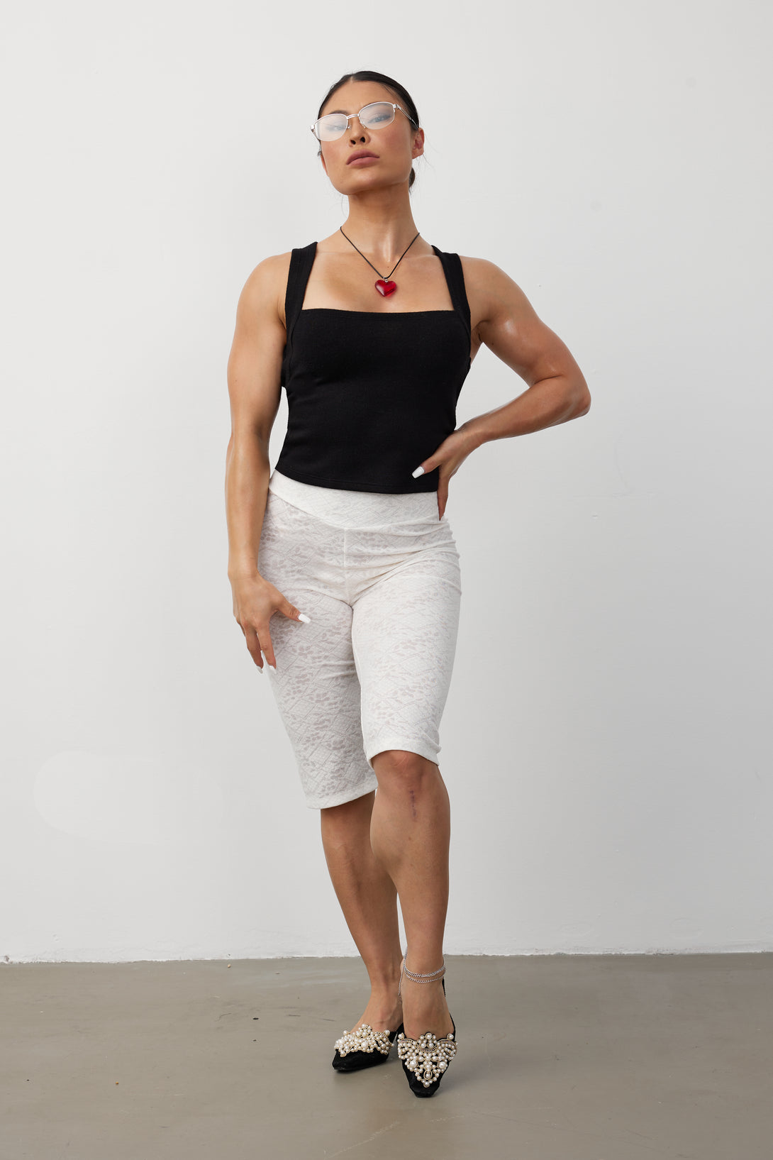 Model is 5'2 (161cm), 130lbs (59kg), with a 26in (66cm) waist. Model wears XXS/XS. Please see size chart for reference.